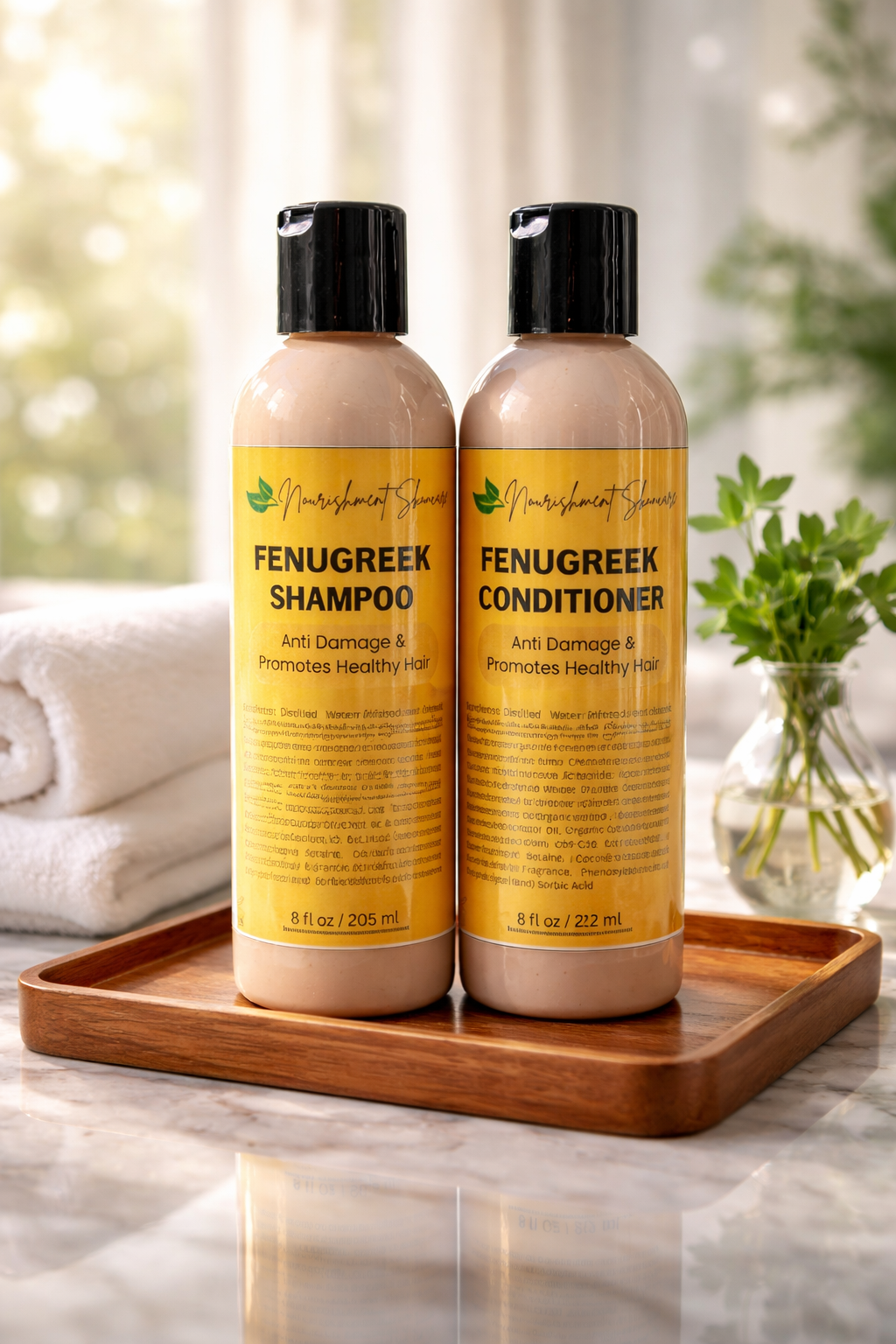 This Creamy Fenugreek Shampoo and Conditioner Set offers a comprehensive approach to hair care, utilizing the nourishing properties of fenugreek and complementary ingredients. It’s formulated with a blend of nourishing and hydrating ingredients designed to promote healthy hair.