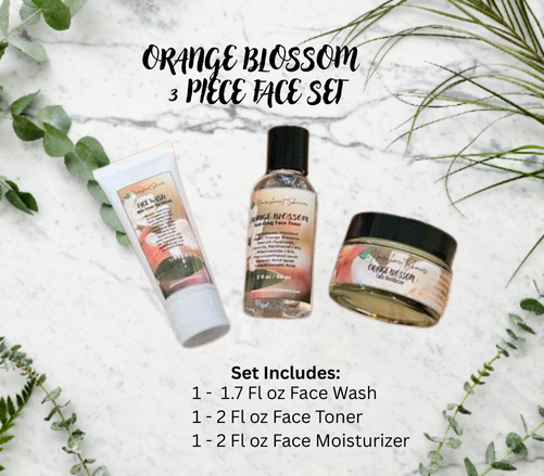 This is a lightweight moisturizer that will penetrate deep into the skin without leaving any greasy feel. It absorbs quickly into the skin leaving the skin silky soft and smooth. The added hydrosol adds wonderful benefits for the skin. It will hydrate and nourish the skin and improve the overall appearance of the skin – making skin smoother looking. The Jojoba oil promotes skin suppleness + cell regeneration. The Rosehip Oil is known to be high in GLA ( gamma Linoleic acid), vitamin A & C, which helps protect against signs of aging. The Sea buck Thorn Oil is abundant in fatty acids and Vitamins C & E, for radiant, supple skin. The Avocado Oil is easily absorbed by the skin and is high in fatty acids, vitamins A, D, and E and will help moisturize and protect the skin. And it is also known to reduces age spots, scars, + UV sun damage and increase the amount of collagen in the skin. The Apricot & Almond Oil will nourish and revitalize the skin without clogging your pores. Wheat protein helps maintain an optimum moisture balance in the skin. Try our 3 piece facial set