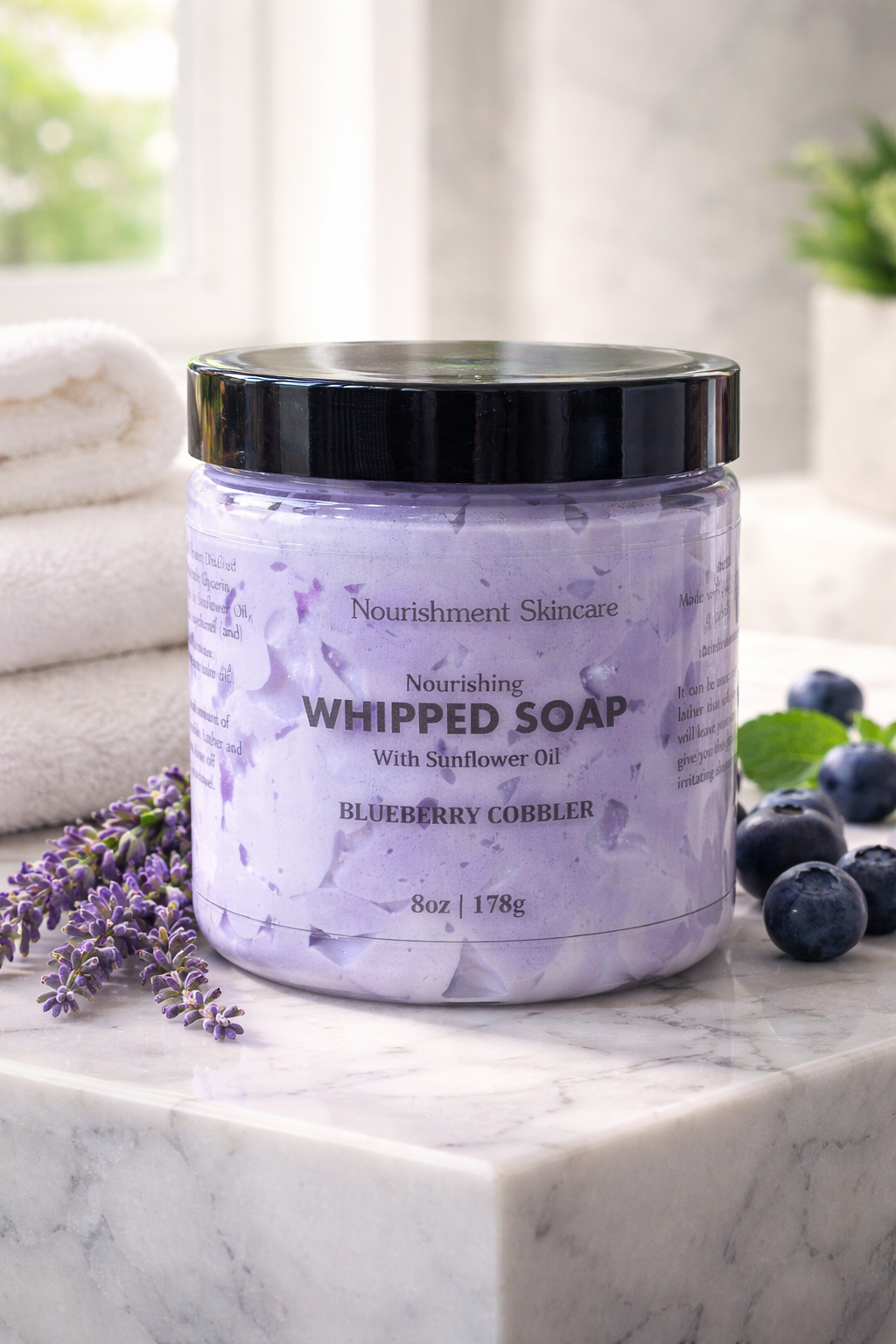 Our Whipped Soap is made to order and comes in three convenient sizes: 4 oz, 8 oz, and 12 oz. Choose the size that best fits your needs and indulge in an elevated bathing experience today!